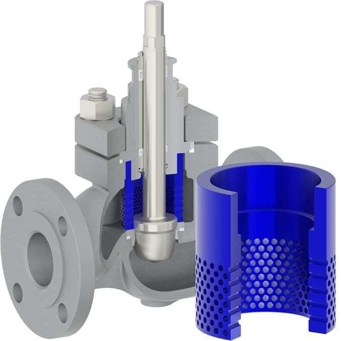 ST-3 Noise Attenuation trim works to reduce control valve noise in a broad spectrum of gas applications. ST-3 trim has two variants: the first is a one or two-stage design that reduces noise levels up to 15 dBA, the second is a multi-stage design for more extreme noise reduction up to 30 dBA.